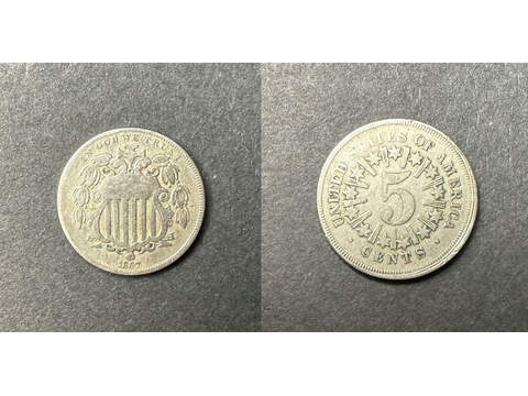 USA 5 cents 1867, F-VF Lagerantal: I lager 1 000 SEK Lägg i varukorgen Beskrivning Kvalitet: F-VFKatalog: KM 96Valör: 5 cents Det finns ingen beskrivning för denna produkt ännu.