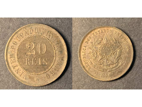 Brasilien 20 reis 1906, AU Lagerantal: I lager 150 SEK Lägg i varukorgen Beskrivning Kvalitet: AUKatalog: KM 490Valör: 20 reis Det finns ingen beskrivning för denna produkt ännu.