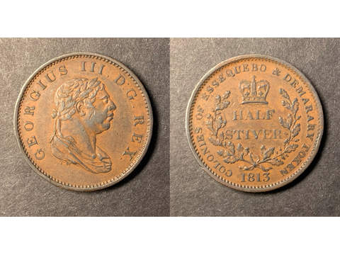 Brittiska Guyana George III 1/2 stiver 1813, AU Lagerantal: I lager 1 500 SEK Lägg i varukorgen Beskrivning Kvalitet: AUKatalog: KM 9Valör: 1/2 stiver Det finns ingen beskrivning för denna produkt ännu.