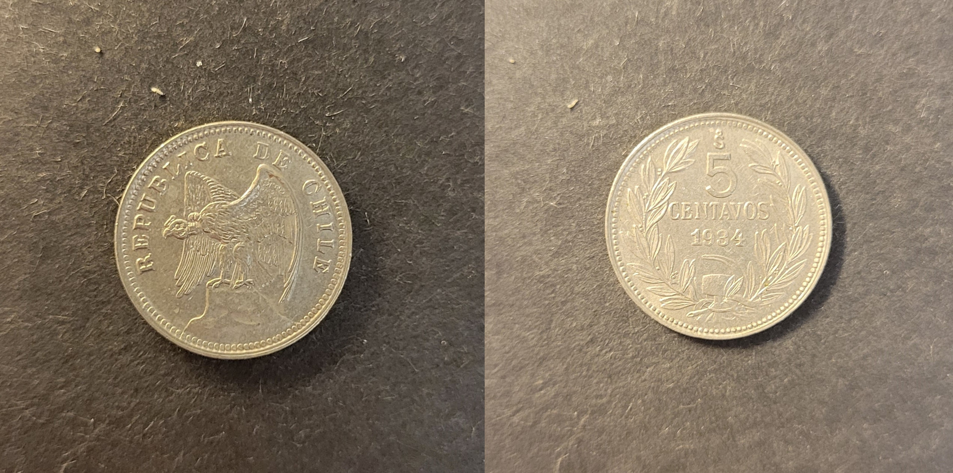 Chile 5 centavos 1934, UNC Lagerantal: I lager 150 SEK Lägg i varukorgen Beskrivning Kvalitet: UNCKatalog: KM 165Valör: 5 centavos Det finns ingen beskrivning för denna produkt ännu.