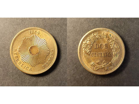 Peru 2 centavos 1864, UNC Lagerantal: I lager 2 000 SEK Lägg i varukorgen Beskrivning Kvalitet: UNCKatalog: KM 188.1Valör: 2 centavos Det finns ingen beskrivning för denna produkt ännu.