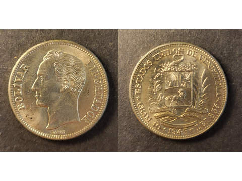 Venezuela 2 bolivares 1945, UNC Lagerantal: I lager 350 SEK Lägg i varukorgen Beskrivning Kvalitet: UNCKatalog: KM 23aValör: 2 bolivares Det finns ingen beskrivning för denna produkt ännu.
