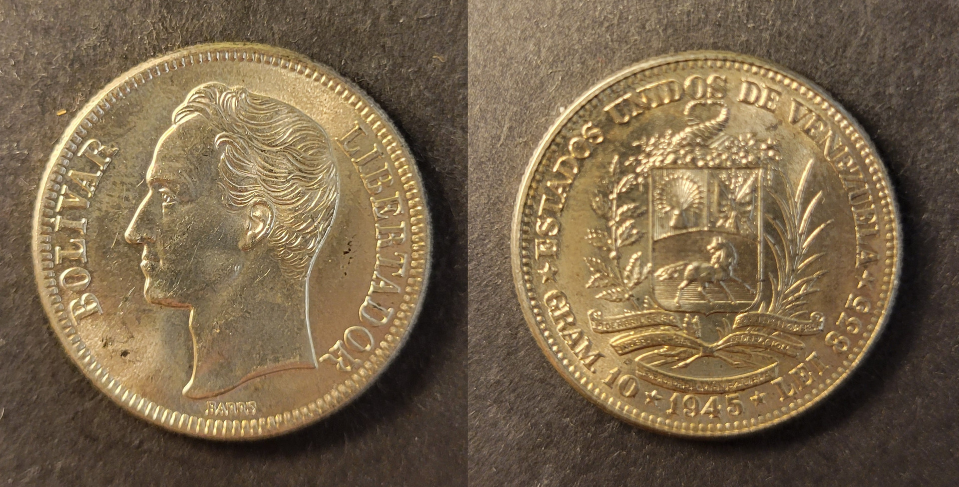 Venezuela 2 bolivares 1945, UNC Lagerantal: I lager 350 SEK Lägg i varukorgen Beskrivning Kvalitet: UNCKatalog: KM 23aValör: 2 bolivares Det finns ingen beskrivning för denna produkt ännu.