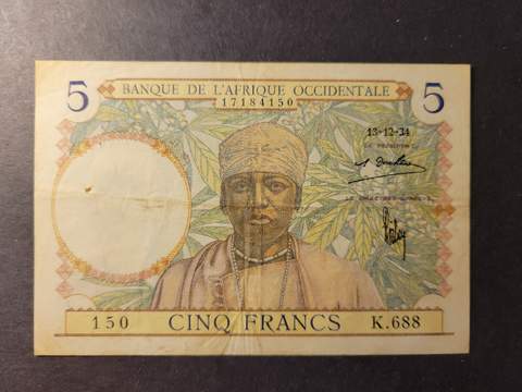 French West Africa 5 francs 13.12.1934, VF Lagerantal: I lager 500 SEK Lägg i varukorgen Beskrivning Kvalitet: VFKatalog: Pick 21Valör: 5 francs Det finns ingen beskrivning för denna produkt ännu.