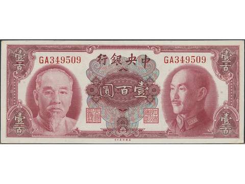 Banknotes, China. Pick 394, 100 yuan 1945. GA349509. Crisp original note without folds. …