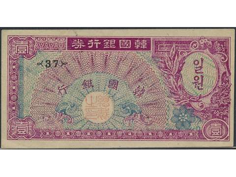 Banknotes, South Korea. Pick 11a, 1 won 1953. Crisp note with minor handling marks. Block 37. XF-UNC.