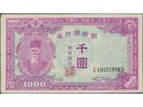 Banknotes, South Korea. Pick 3, 1000 won 1950. Serial number C10251978D. XF-UNC.