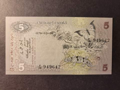 Ceylon 5 rupees 26.3.1979, UNC