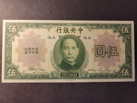 China. The Central Bank of China. 5 dollars 1930, UNC Lagerantal: I lager 300 SEK Lägg i varukorgen Beskrivning Kvalitet: UNCKatalog: Pick 200fValör: 5 dollarsUtgivare: The Central Bank of China Det finns ingen beskrivning för denna produkt ännu.