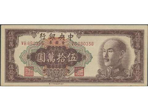 Banknotes, China. Pick 424, 500000 gold yuan 1949. Crisp original note with minor …
