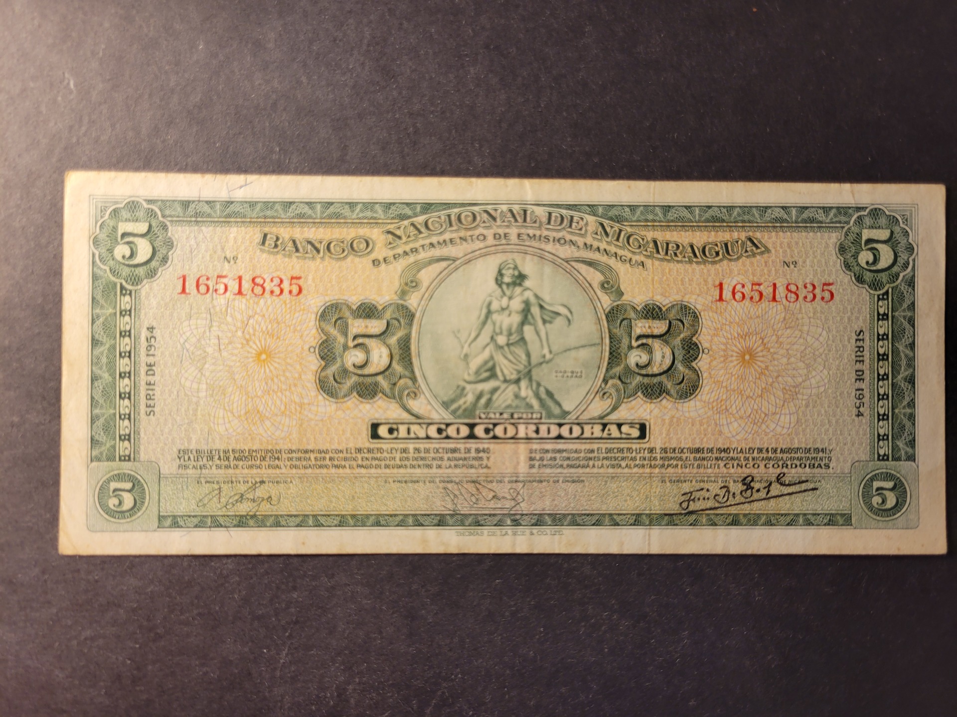 Nicaragua 5 cordobas 1954, VF Lagerantal: I lager 1 000 SEK Lägg i varukorgen Beskrivning Kvalitet: VFKatalog: Pick 100bValör: 5 cordobas Det finns ingen beskrivning för denna produkt ännu.