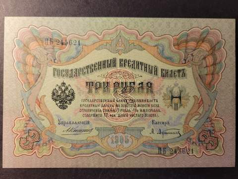 Russia 3 roubles 1905, AU Good Prefix Lagerantal: I lager 700 SEK Lägg i varukorgen Beskrivning Kvalitet: AUKatalog: Pick 9b / ZG 1.16.21Valör: 3 roubles Lätt mittveck.