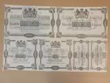 Provtrycksark med hela serien av 1858/1864-års utgåva 1 riksdaler till 500 riksdaler, i svartvitt på tunt papper