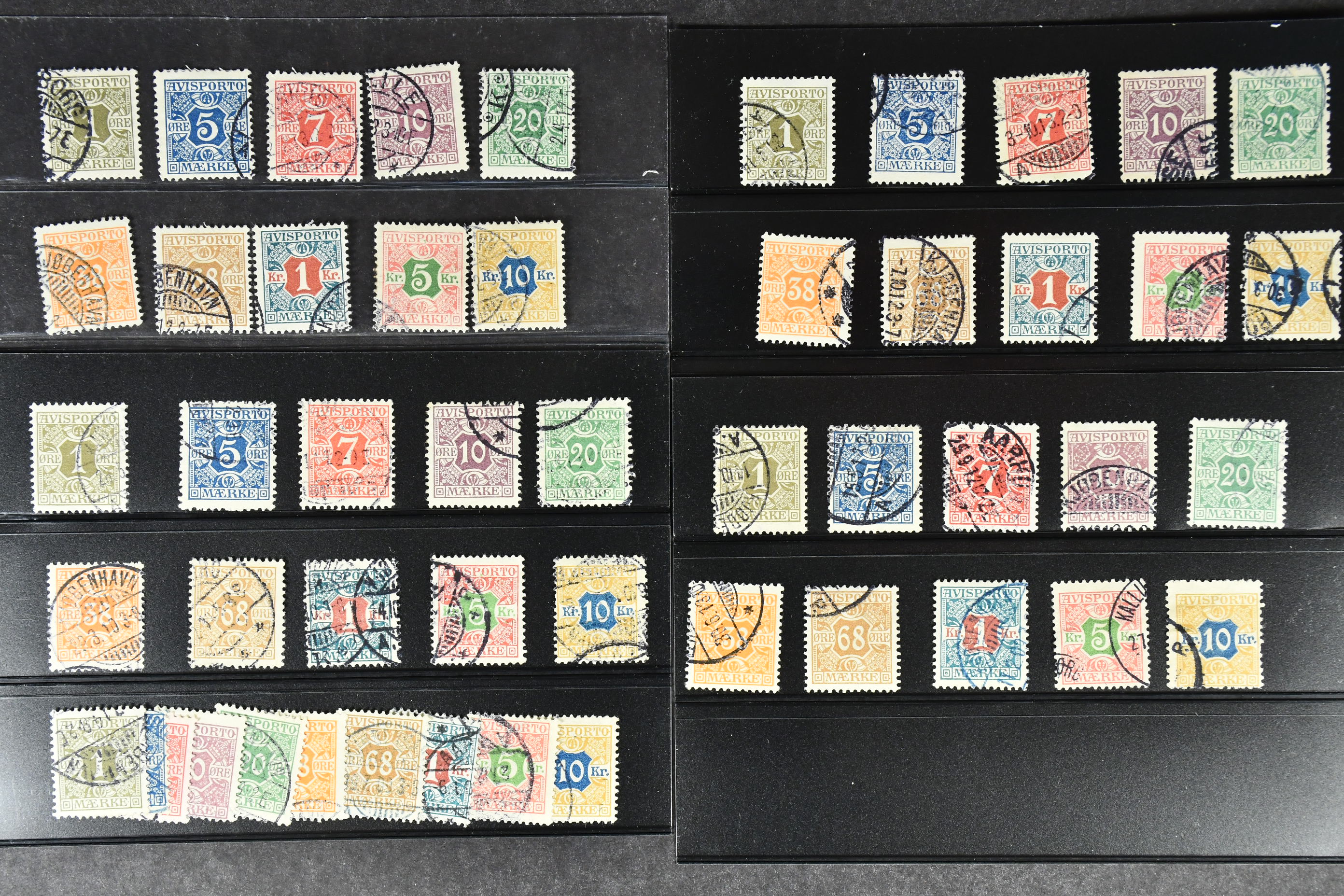 Denmark. Newspaper Facit TI1–10 used, 1907 Numeral type SET wmk Crown (10). 5 sets in mostly fine quality. SEK 6250