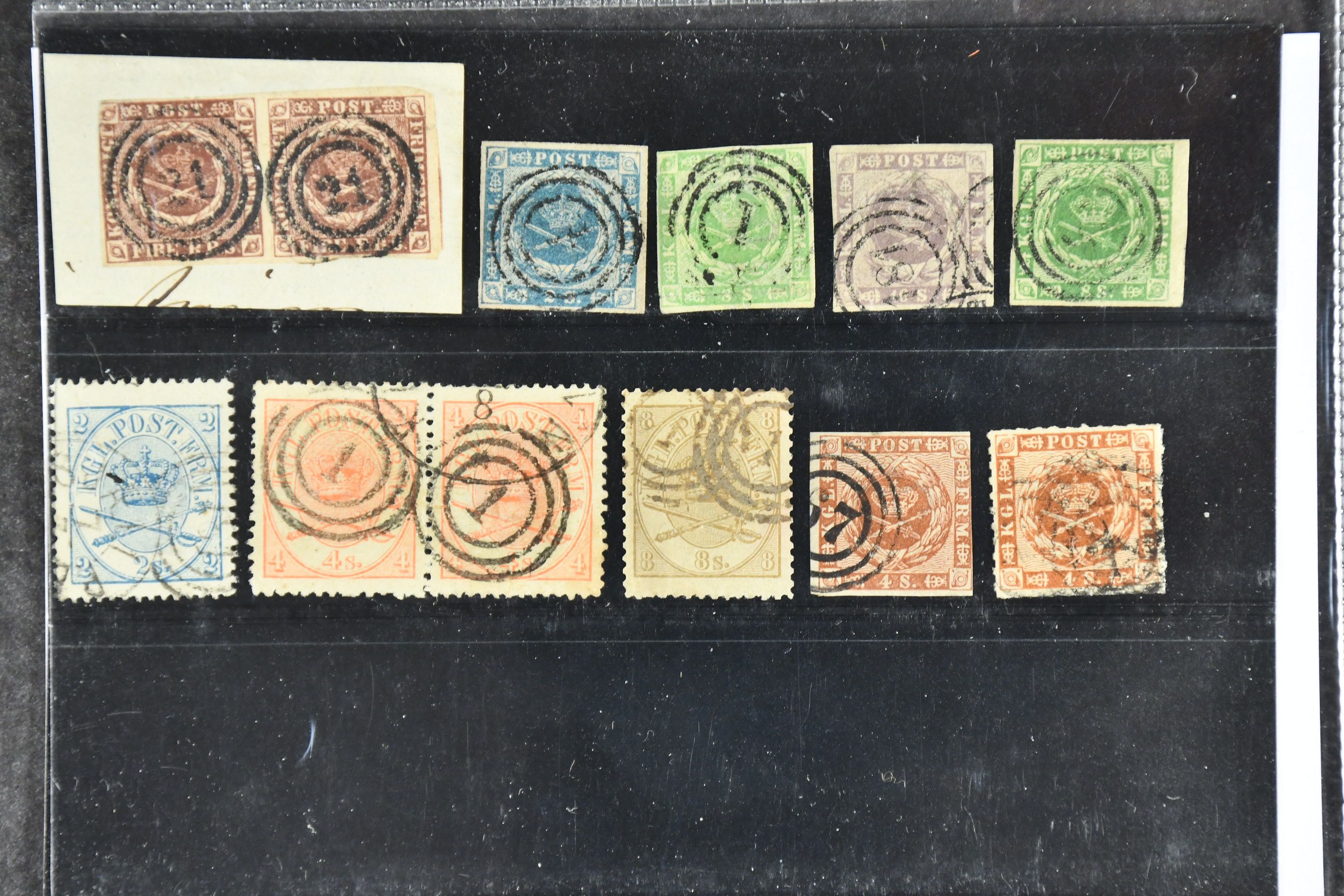 Denmark. Used 1851–1870. All different, e.g. F 2 (pair), 3, 5-6, 8, 11, 13 (pair), 14. Mostly good quality. F SEK 9400 (10)