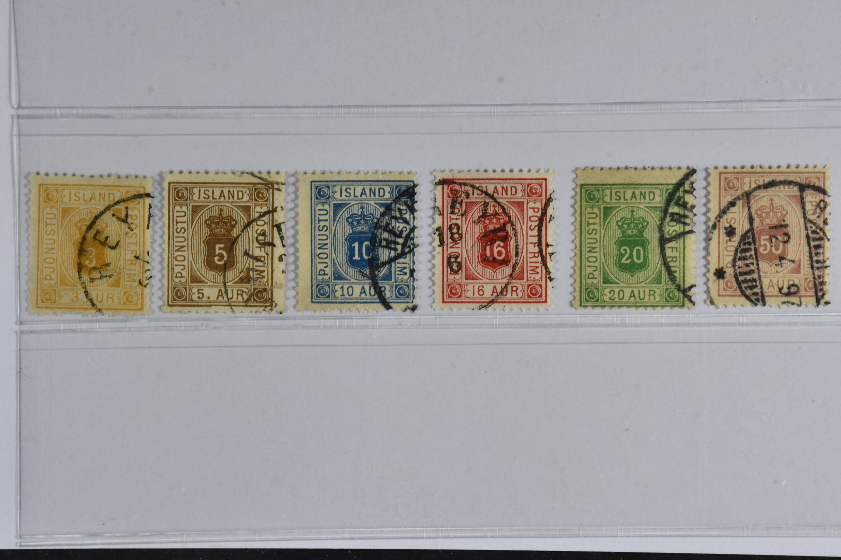 Iceland. Official Facit Tj4–9 used, 1882 Coat-of-Arms perf 14 × 13½ SET (6). SEK 2480