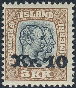 Iceland. Facit 107 ★, 1930 Surcharge on Two kings 10/5 Kr blue-grey/brown. SEK 4000