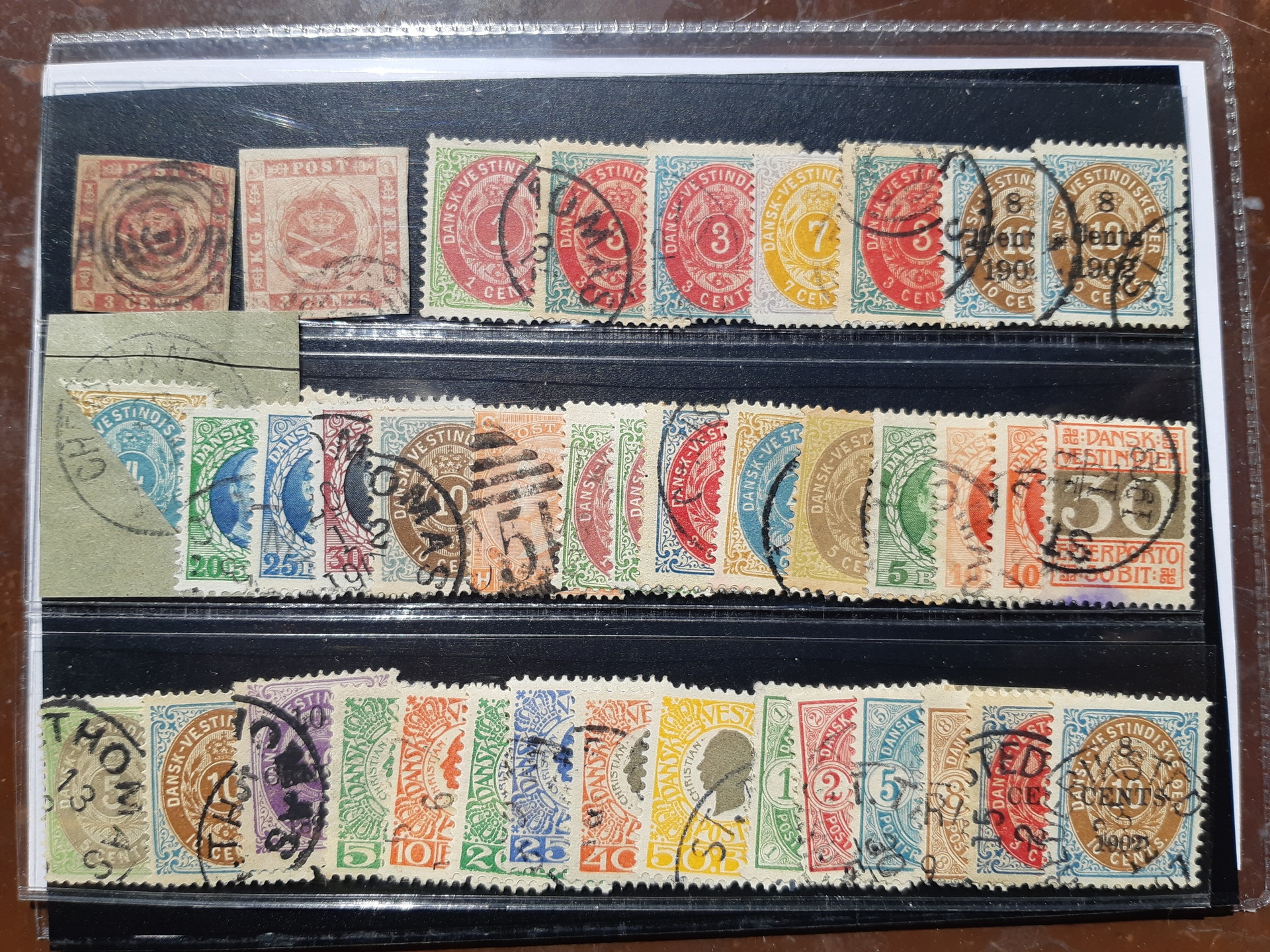 Danish West Indies. Lot used 1860s–1900s on stock card. Incl. 4 c diagonally bisected on piece. Somewhat mixed quality. (39)