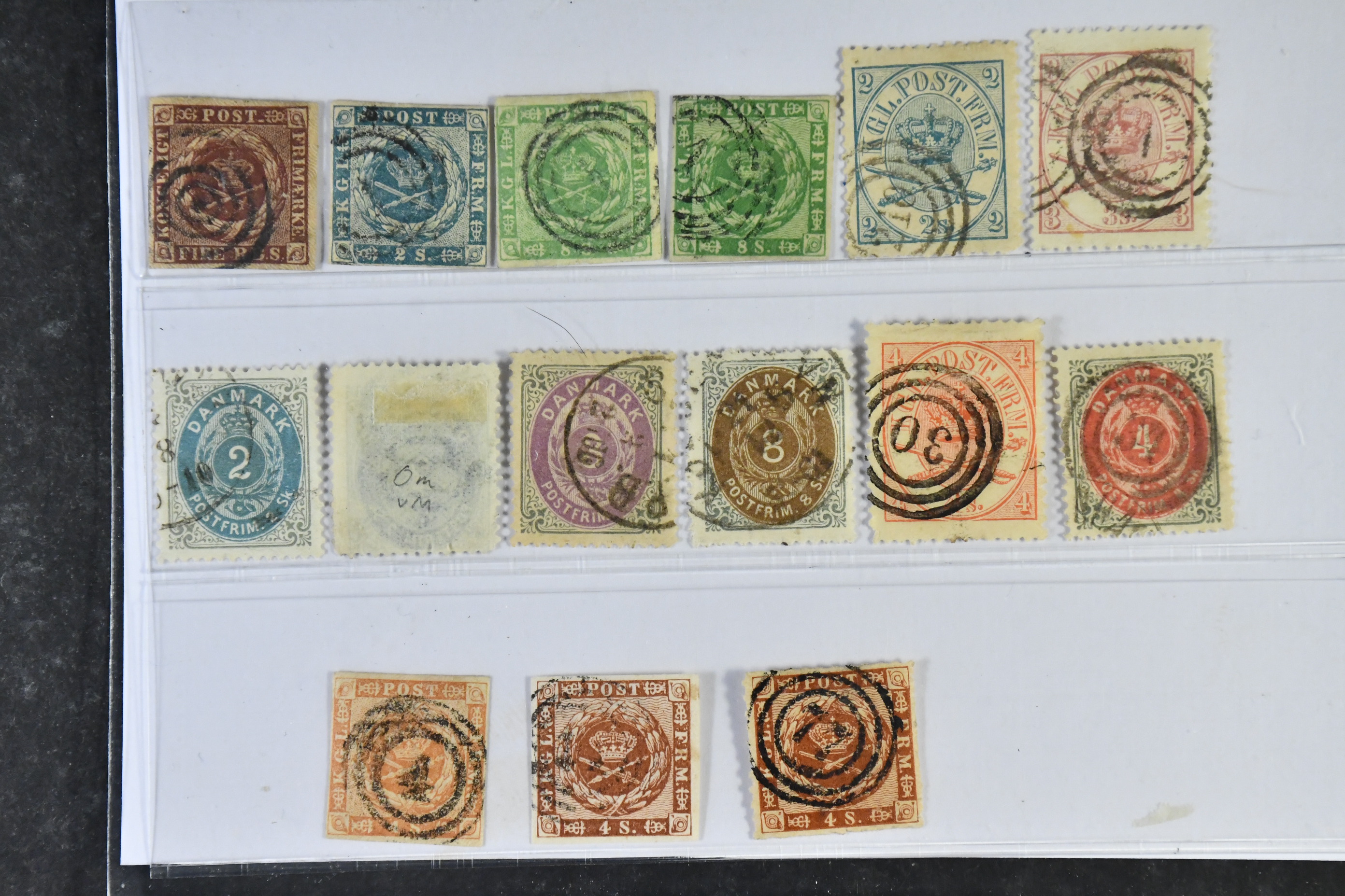 Denmark. Used 1854–1905. All different, e.g. F 2-3, 5, 8, 11-12, 20, 20vm, 21, 23. Mostly good quality. F SEK 8220 (15)