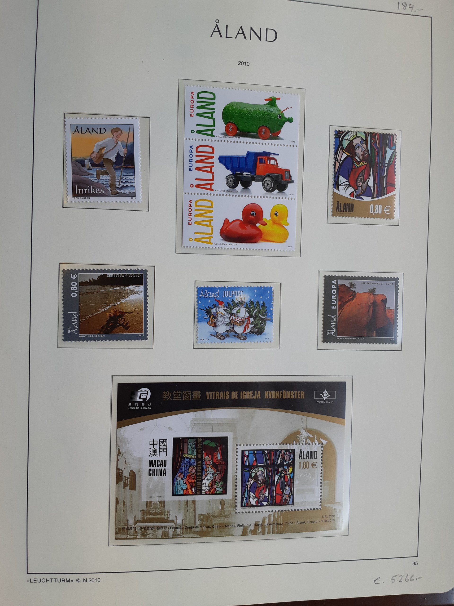 Åland. Collection ★★ 1984–2010 on Leuchtturm leaves. High face value. Also some other Finnish areas. Fine quality. (450)