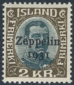 Iceland. Facit 164 ★★, 1931 "Zeppelin 1931" overprint 2 Kr green-grey/brown. SEK 1400