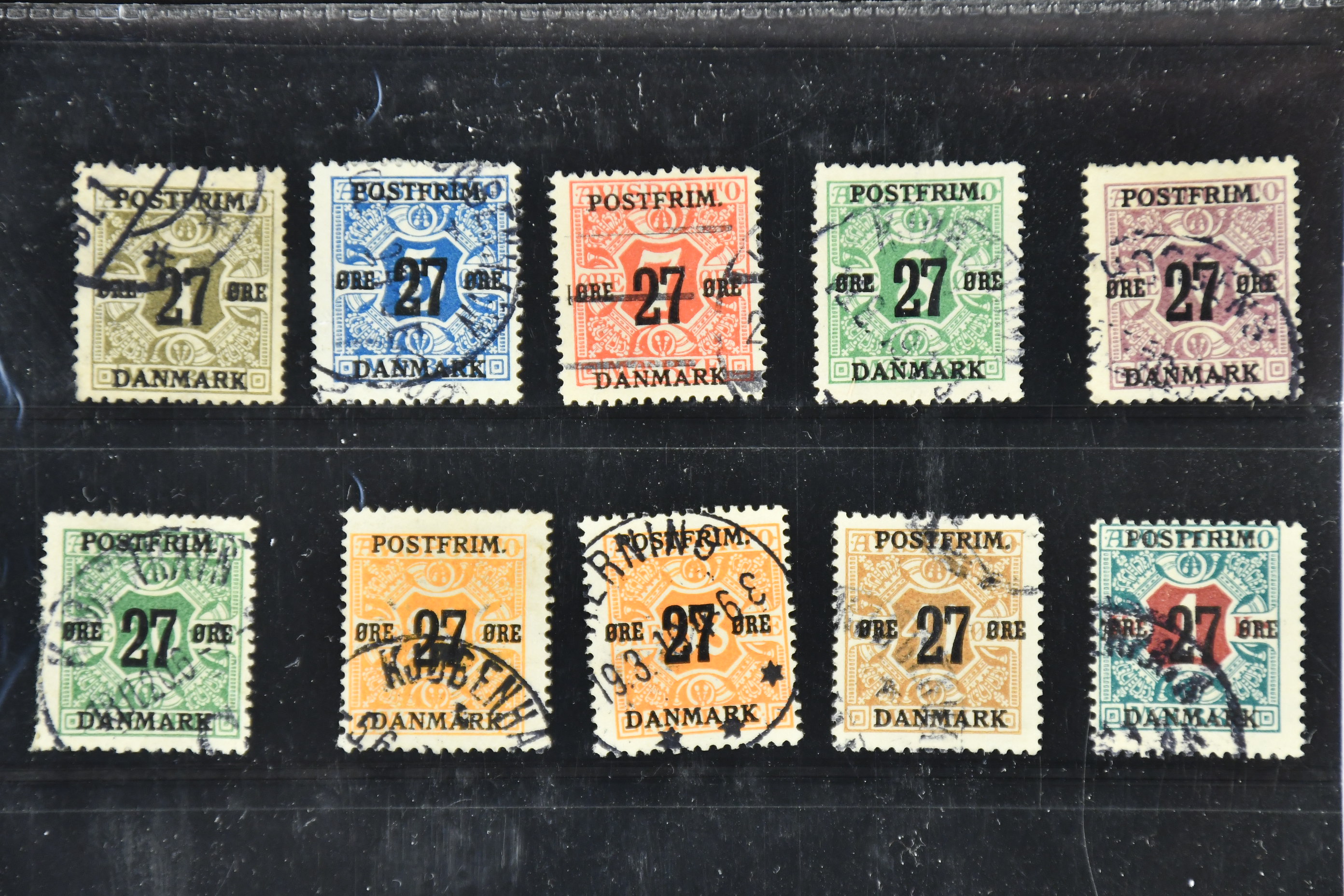 Denmark. Facit 184–93 used, 1918 Surcharge on Newspaper stamps SET watermark cross (10). SEK 1800