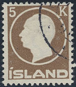 Iceland. Facit 120 used, 1912 King Frederik VIII 5 Kr brown. Uneven perf. SEK 1900