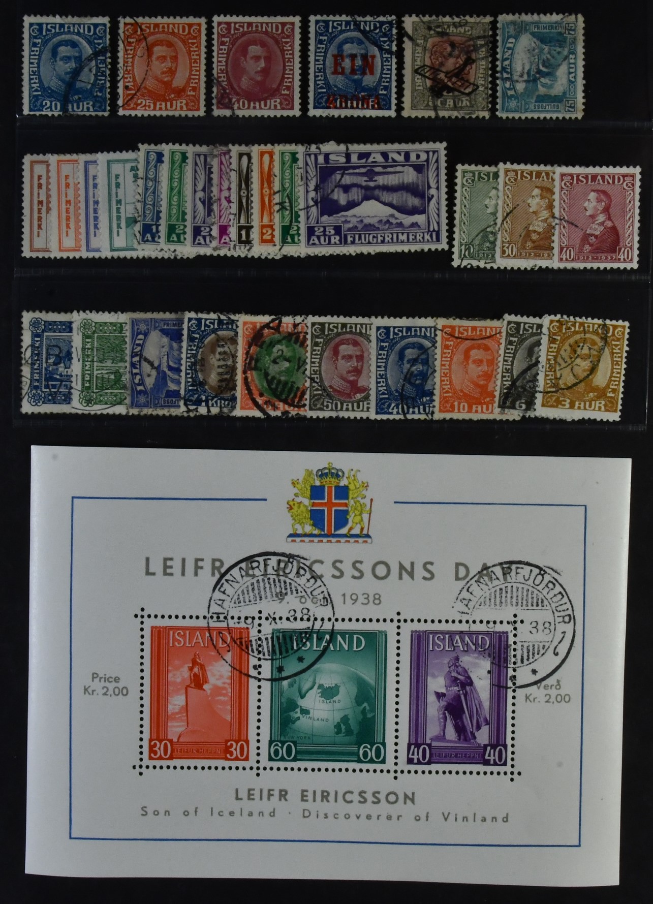 Iceland. Used 1920–38. All different, e.g. F 134, 137, 154, 159, 161, 199, 200-03, 204-09 (all perf.), 218-20, souv.sheet 2. Mostly good quality. F SEK 5200 (31)