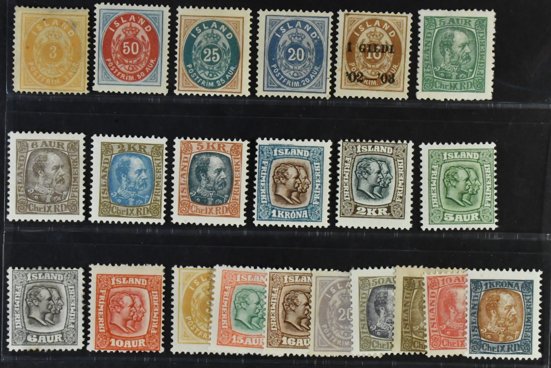 Iceland. ★ 1876–1908. All different, e.g. F 8, 18, 28(*), 29, 54, 65-66, 74-75, 79-81, 88-89. Mostly good quality. F SEK 7760 (22)