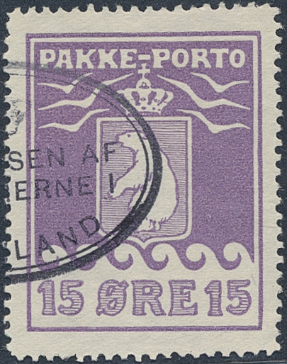 Greenland. Parcel Facit P8 used, 1915 Thiele II 15 øre violet. SEK 2200