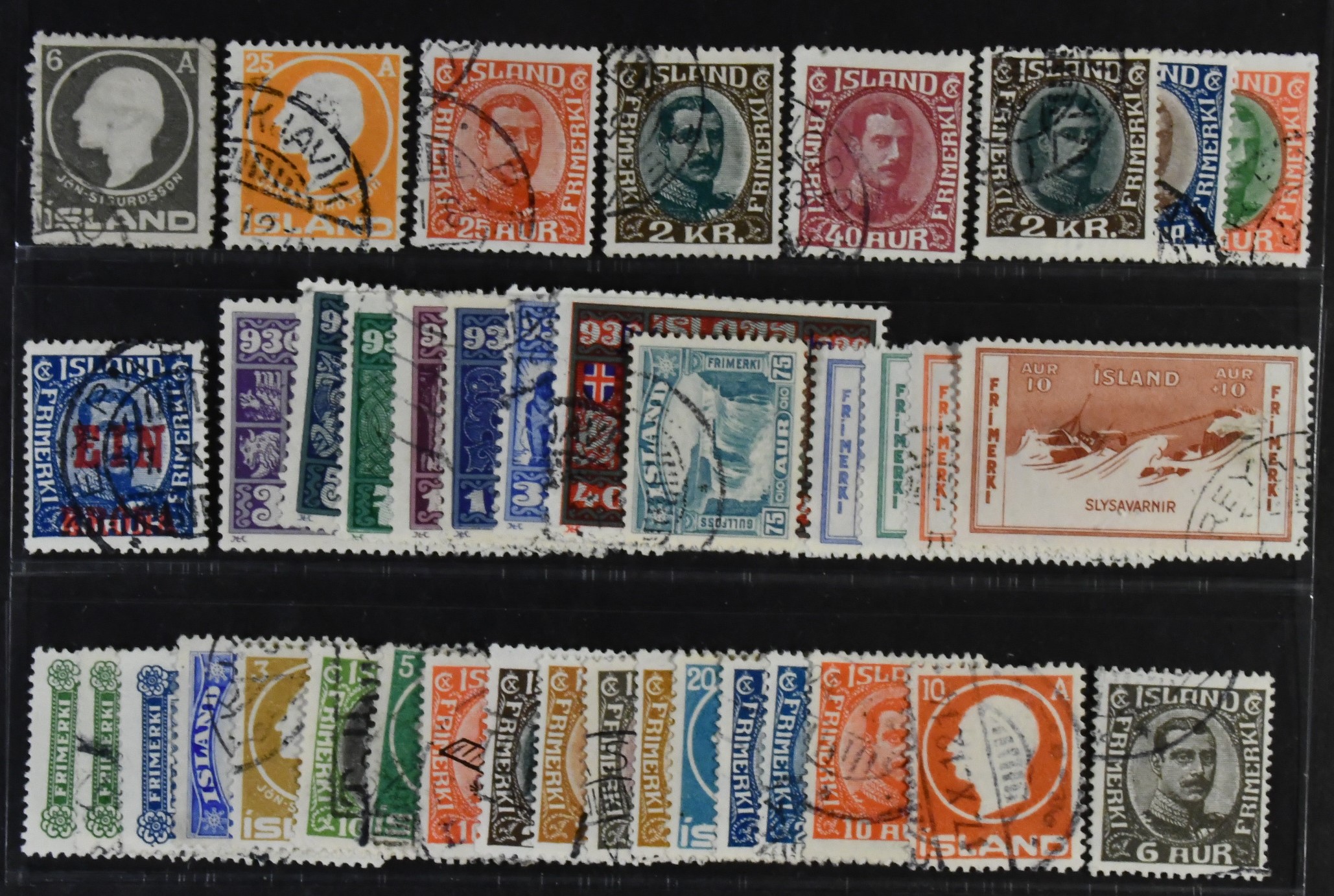 Iceland. Used 1911–1933. All different, e.g. F 111, 113, 137, 143, 154, 156, 159, 199, 200-03. Mostly good quality. F SEK 5055 (39)