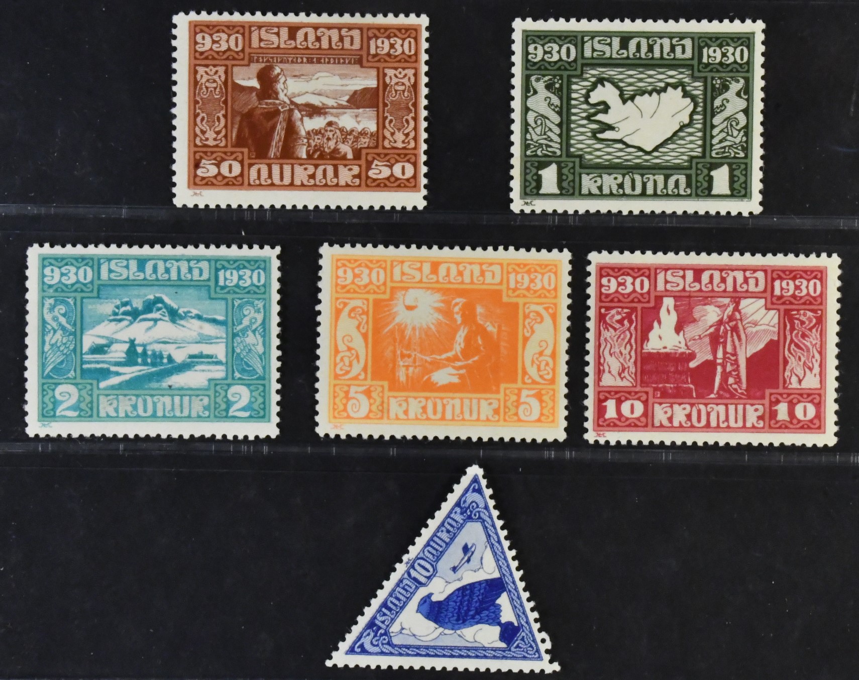 Iceland. Facit 183–88 ★★/★, 1930 The Parliament SET 50 aur to 10kr and 10 aur air mail (6). 2 Kt *, the others **. SEK 6300