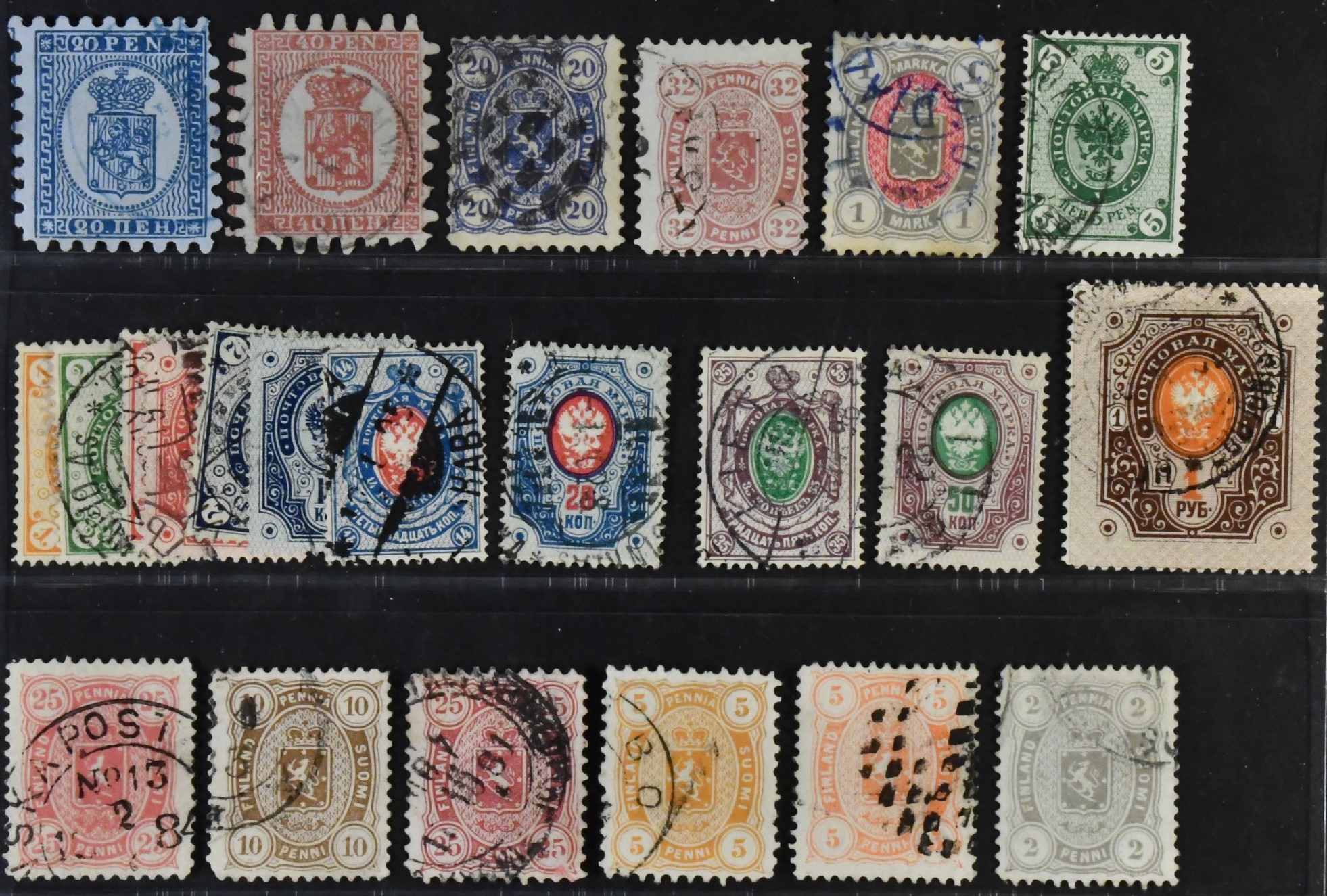 Finland. Used 1867–1891. All different, e.g. F 9, 16c1, 18c1, 24, 35-45, 48. Mostly good quality. F SEK 5060 (22)