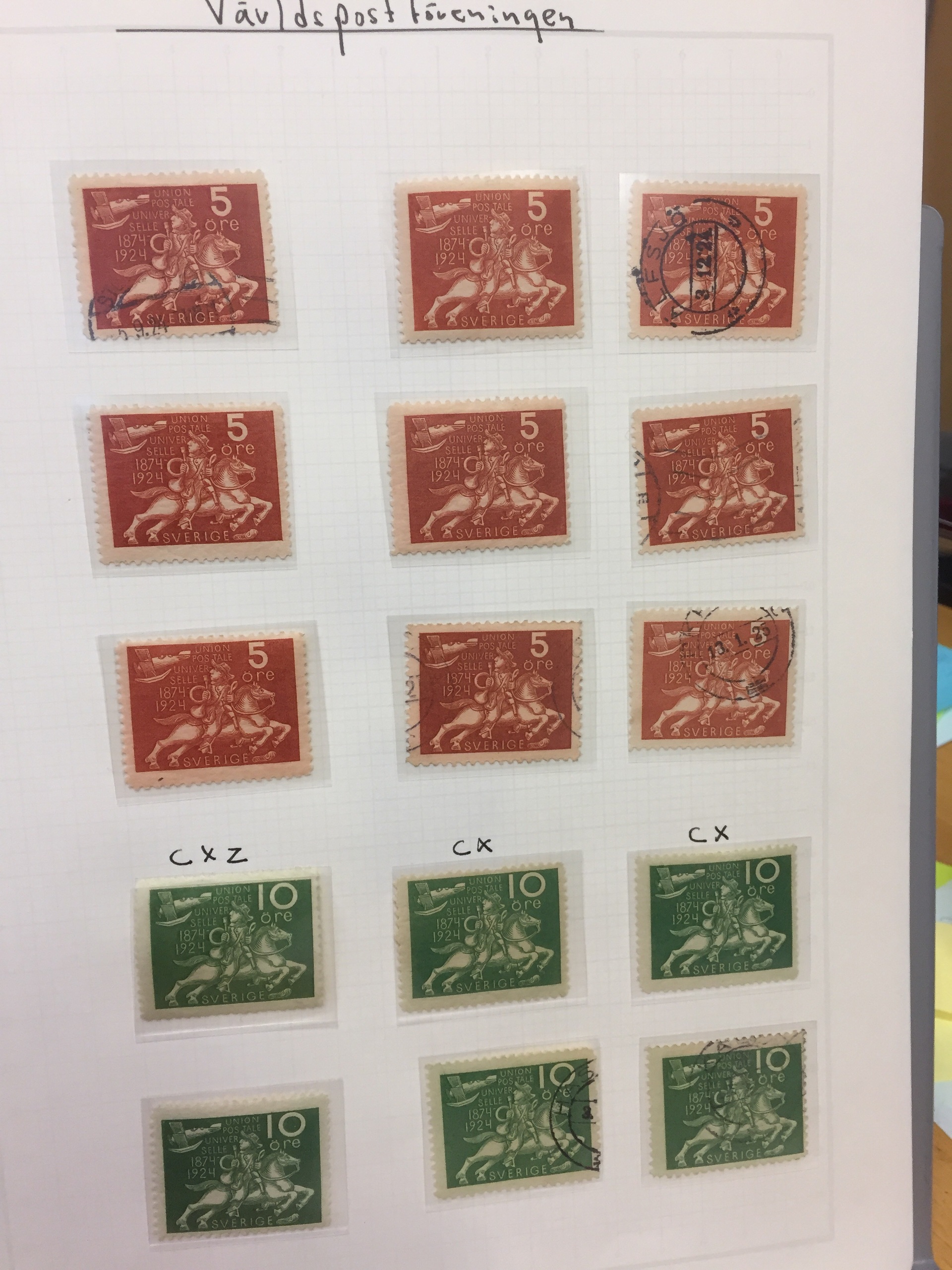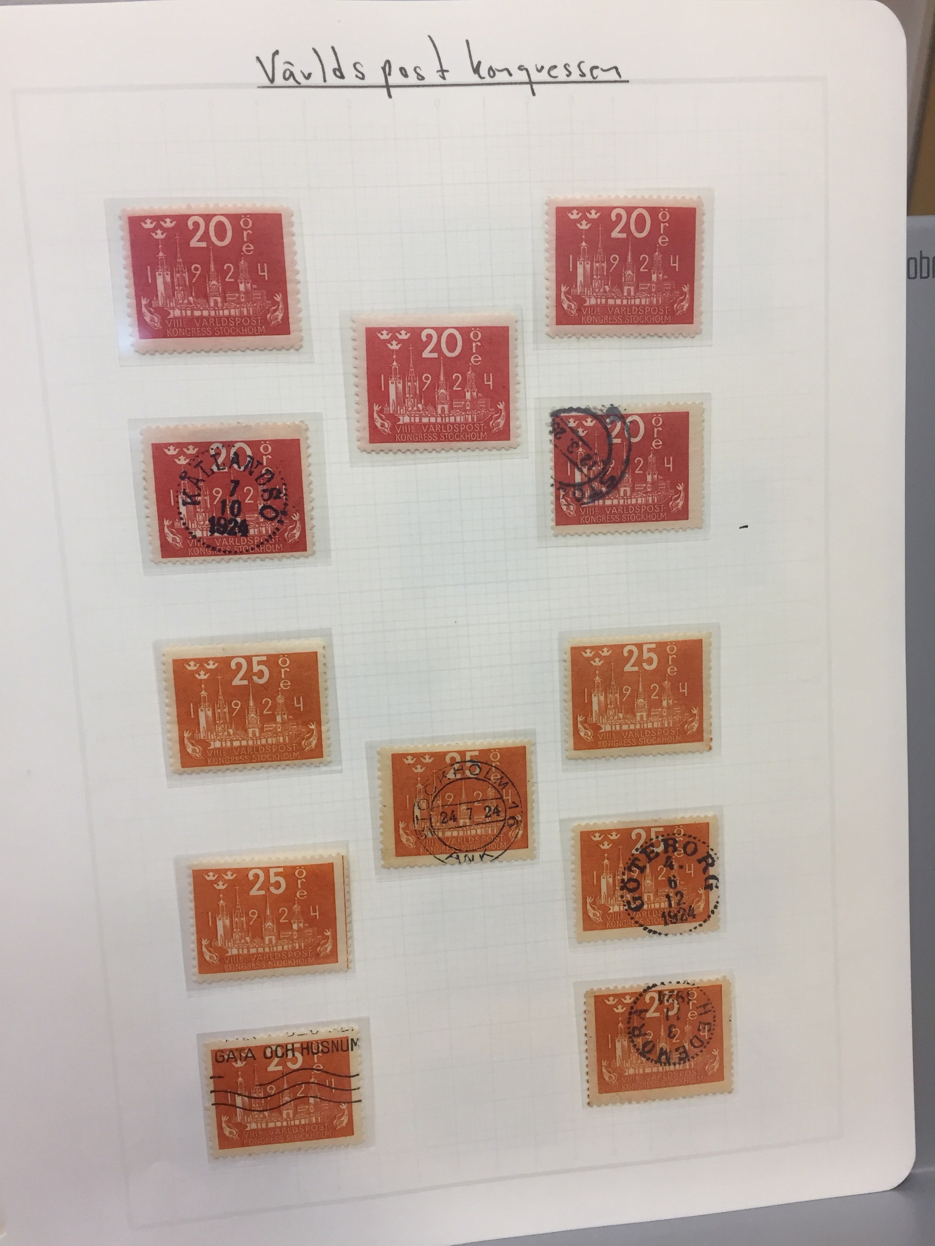 Sweden. ★★/★/⊙. Lot 1924 issues on leaves up to 5 kr in mostly fine quality. Often many of each; in total more than 150 "better" values inkl 18 KR values.. Please see a selection of scans at www.philea.se. Somewhat mixed quality.