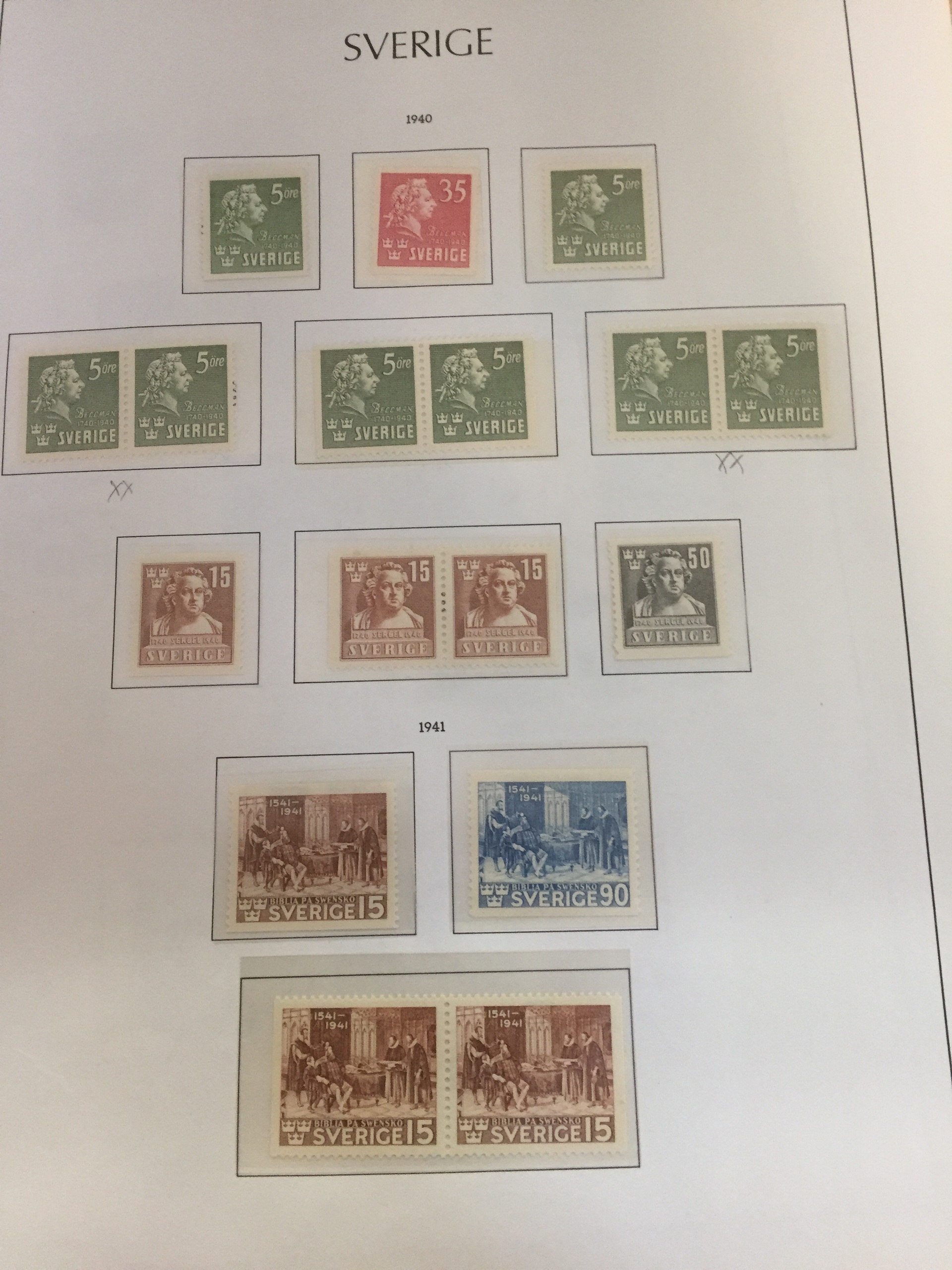 Sweden. Collection mostly ★ 1862–1951 on leaves. Some better as some BC/CB-pairs. Please see a selection of scans at www.philea.se. In the beginning mixed quality, later fine.