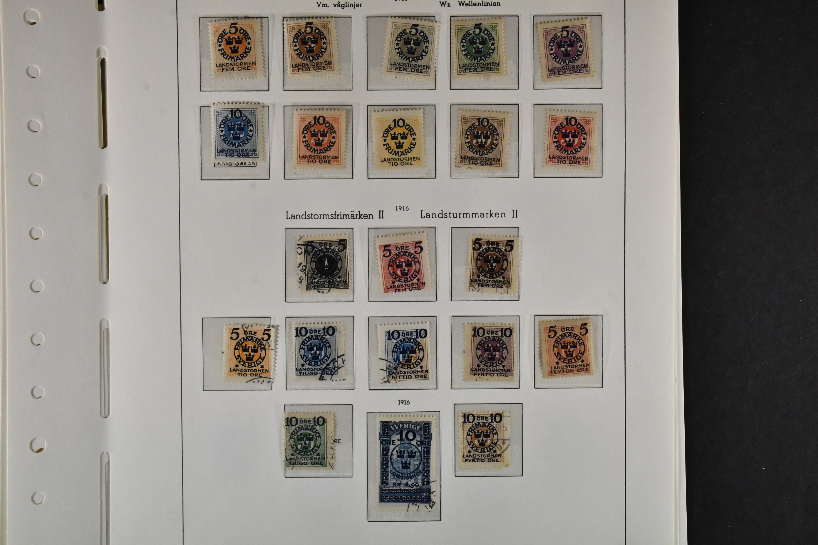 Sweden. Collection ★★/★/⊙ 1856–1924 in Leuchtturm leaves with stamp mounts. COMPLETE in main numbers excl. 3 öre brown local and the "Värnamo" stamps. No back of the book. High value! Entire lot available at www.philea.se. Partially mixed quality, but mostly fine.