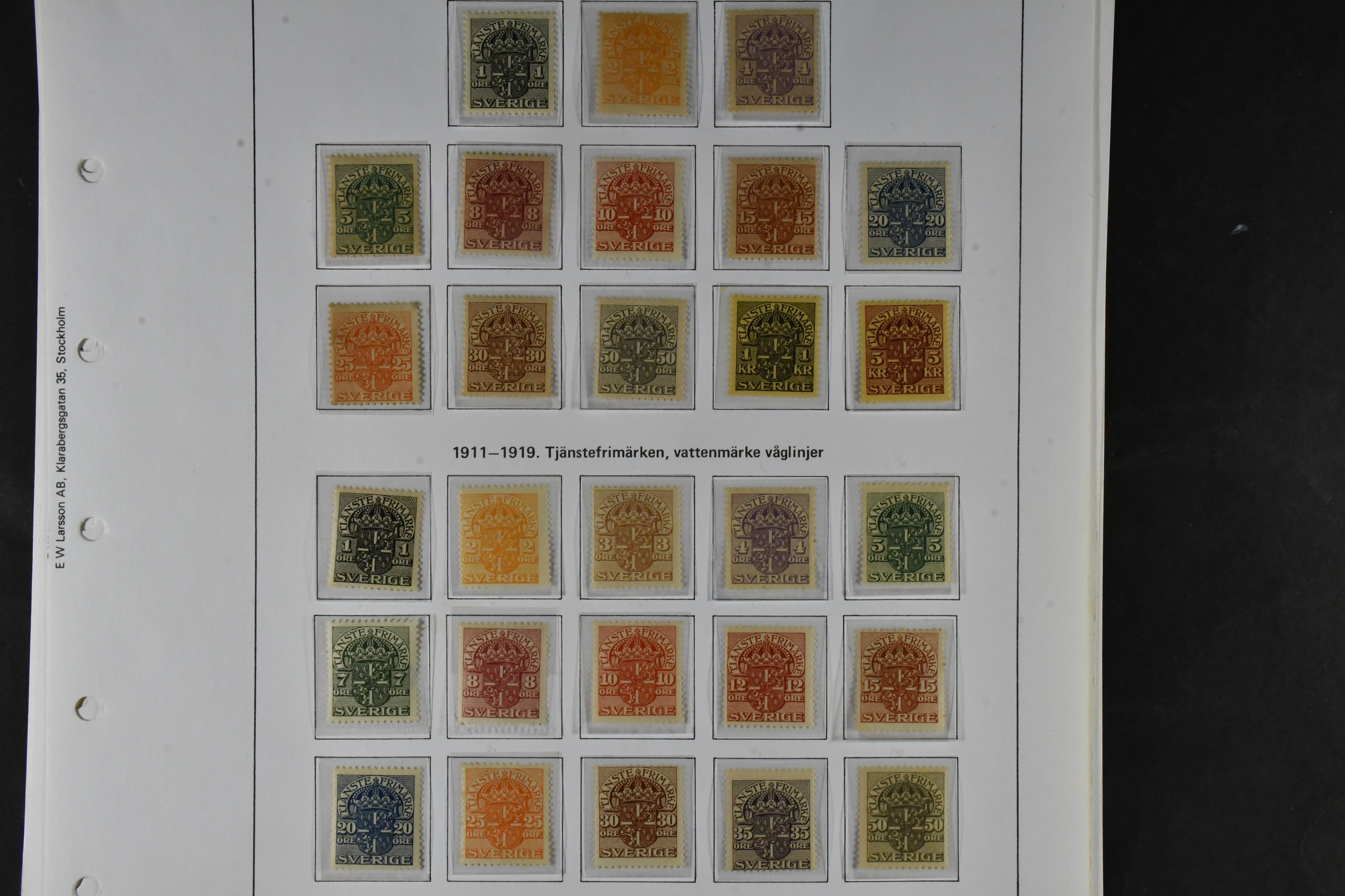 Sweden. Collection mostly unused 1855-1936 on leaves. Few used in the beginning, from about 1880 mostly x with some xx incl Officials and Dues, Medallion etc, and from coil stamps onwards with few exceptions xx, many good stamps especially from 1920 onwards, e.g. F196-223, Royal palace both papers=x, and the remaining 1930 sets xx. Fine quality.