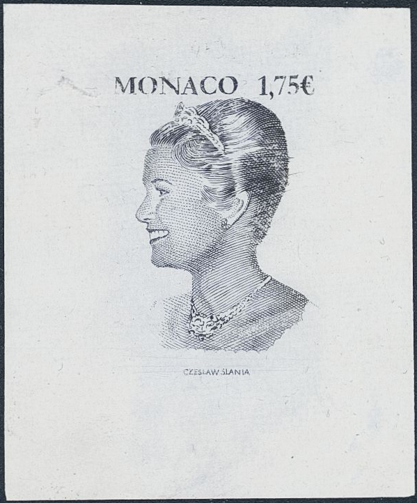 Thematics, Slania, Monaco. Michel 2711. (★). 2004 Princess Gracia Particia 1.75 € from souvenir sheet. Plate proof in grey.