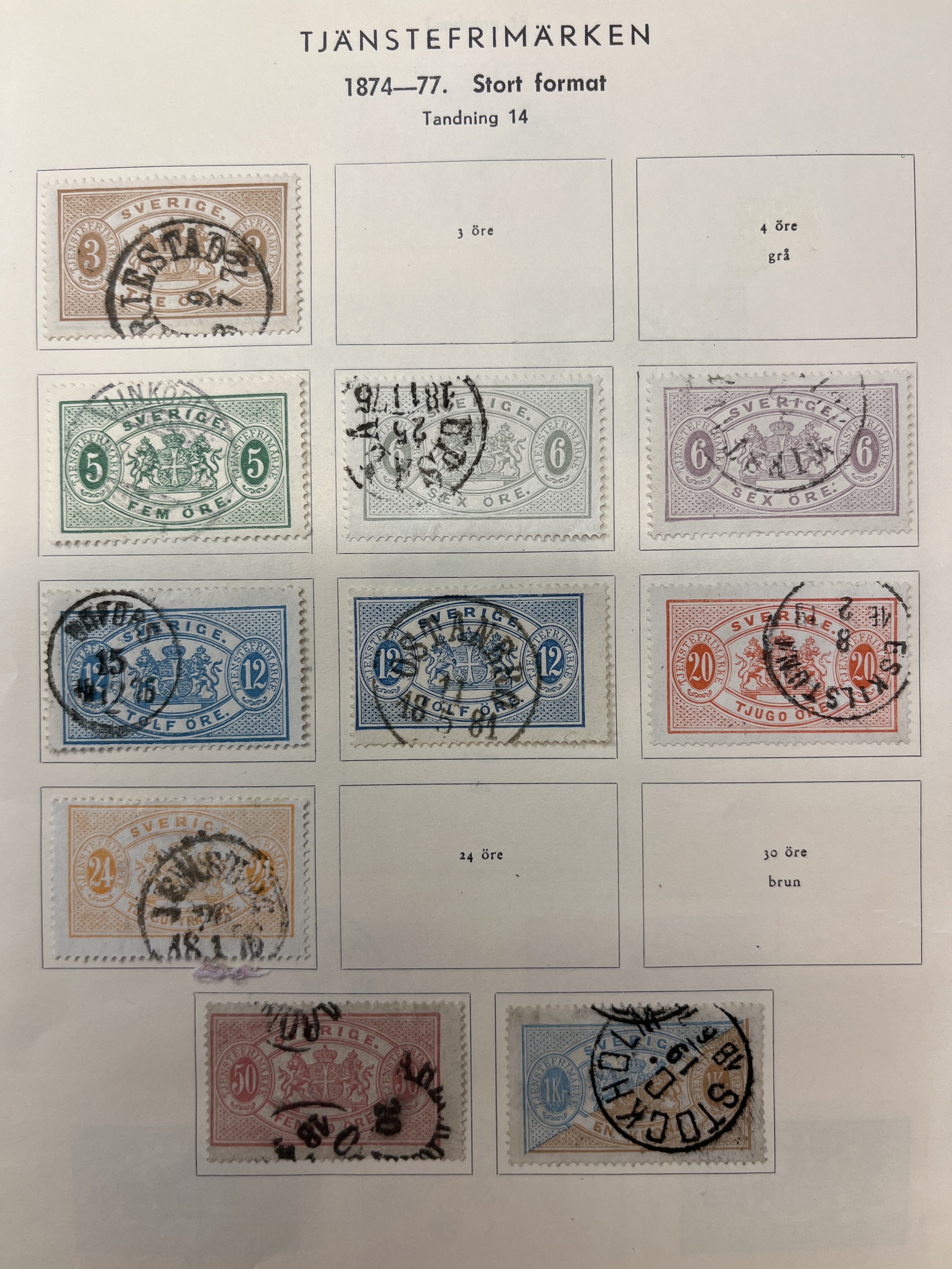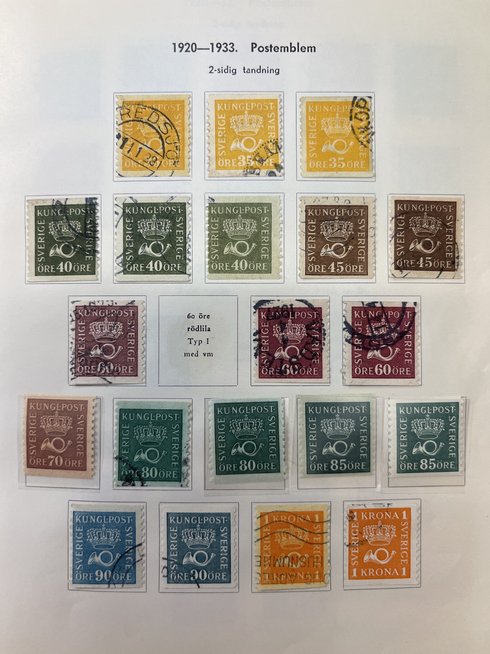 Sweden. Collection ★★/★/⊙ 1862–1955 on leaves. Incl. officials and postage dues. Low reserve. Please see a selection of scans at www.philea.se. Somewhat mixed quality.