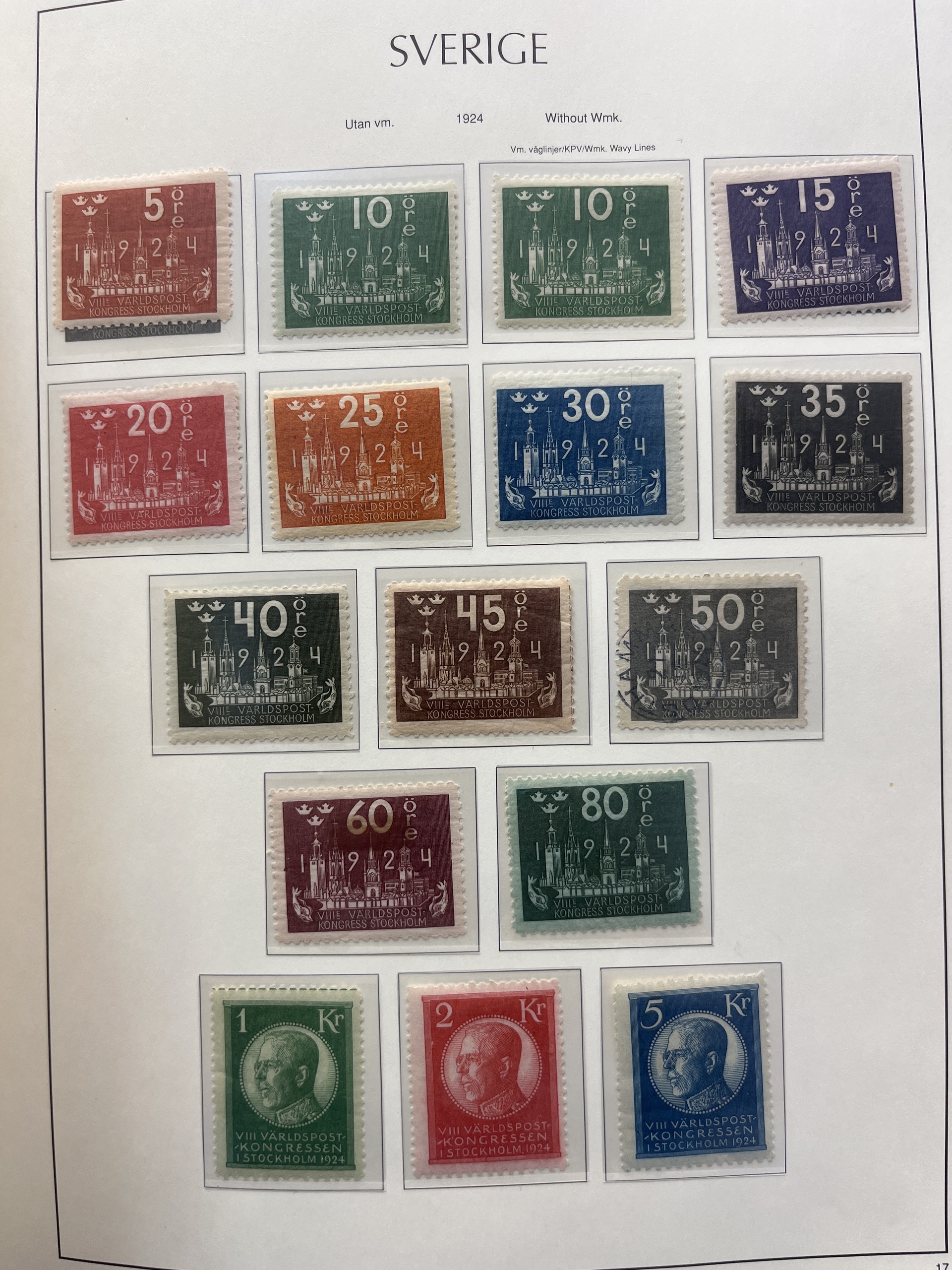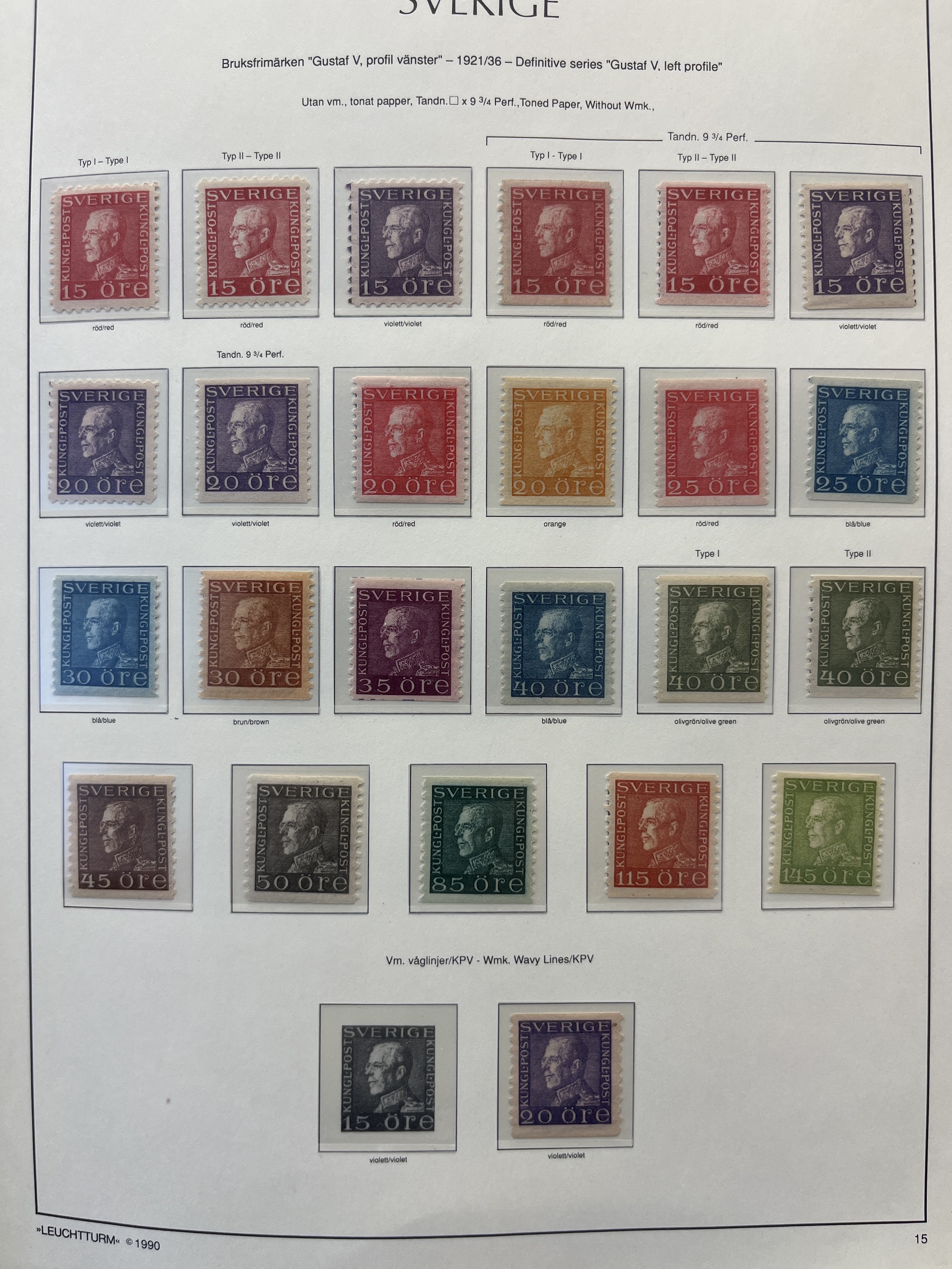 Sweden. Collection ★★/★/⊙ 1855–1941 incl. officals, postage due stamps and military reply stamps in Leuchtturm album with stamp mounts. Starts with 3–24 skill bco, Lying lion incl. 17 öre grey, Circle type perf. 14–13 with ph, etc. Almost complete, 55 and 80 öre G V in Medallion are missing. Please see a selection of scans at www.philea.se. Somewhat mixed quality.