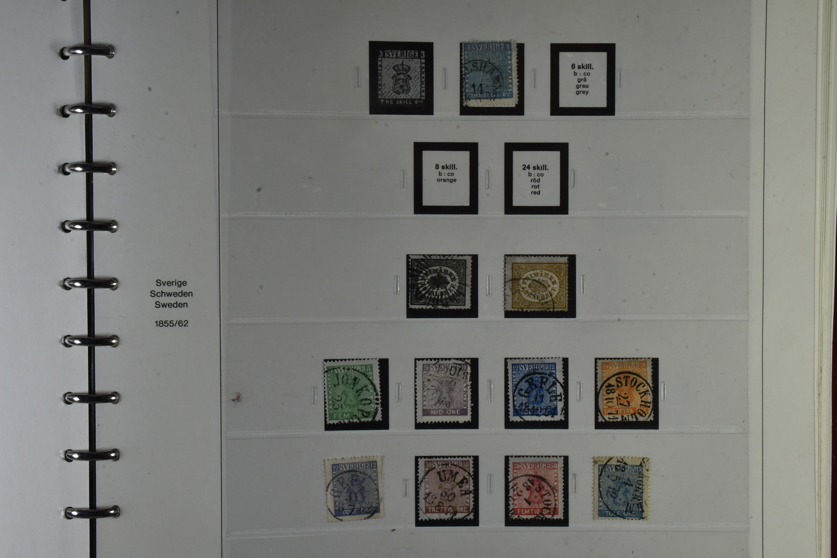 Sweden. Collection used 1855–1936 in SAFE album with stamp mounts. A quite well filled collection, except for skillings. Includes black and brown local, F 37 and a number of fine to excellent cancellations. Please see a selection of scans at www.philea.se. Mostly fine quality. (>200)