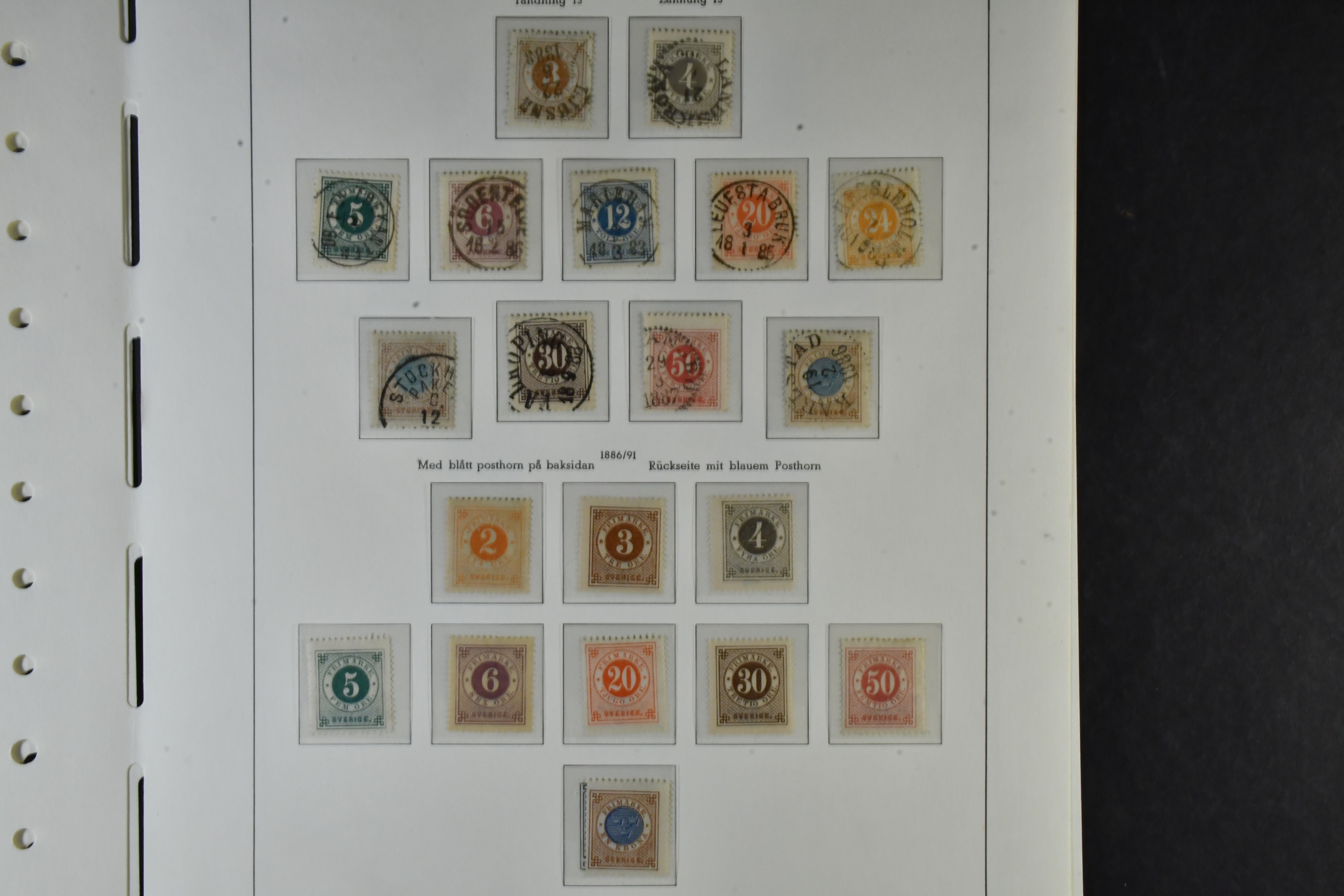 Sweden. ★★/★/⊙ 1855–1936 on leaves. Almost complete in head numbers including 4 and 8 skiling. The entire lot is presented at www.philea.se. Mostly fine quality.