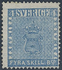 Sweden. Facit 2f (★), 4 skill blue, dense background, medium-thick paper. Very beautiful and fresh copy. Certificate HOW 3, 3, (-) (1997) and opinion (shade) by O.P. SEK 14000