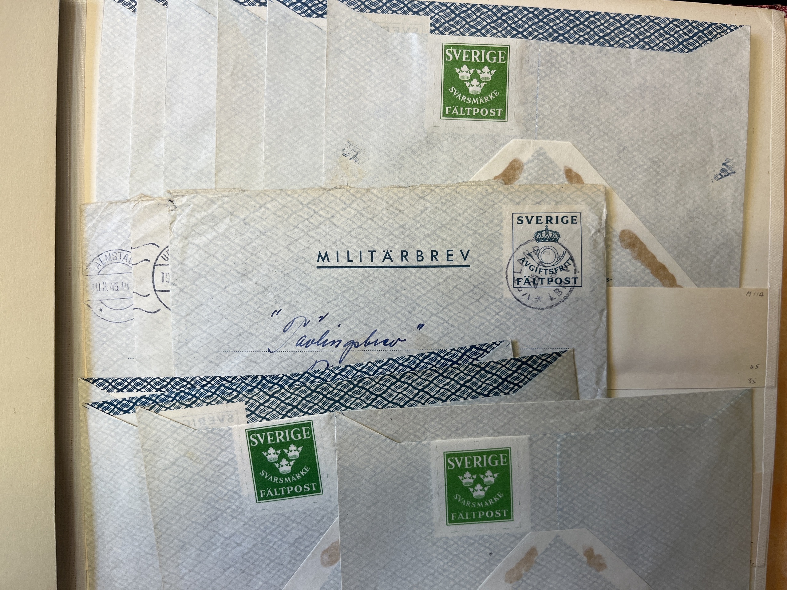Sweden. Military covers, collection/accumulation in two albums. Military covers and military postcards, used and unused. The collection starts with two unused M1 covers.