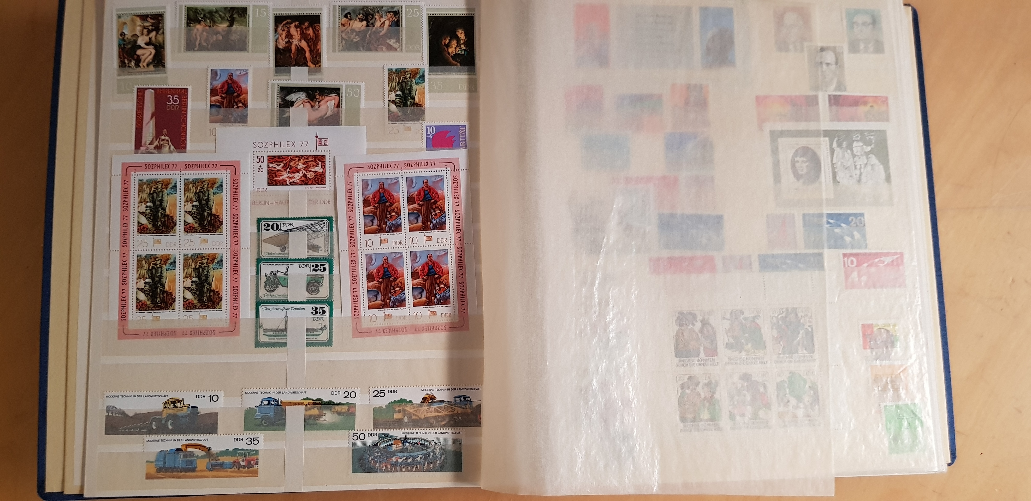 Germany, mixed. Collection/accumulation mostly ★★ 18–1900s in box. One album that is full of DDR stamps, one album that has a lot of duplicates from Germany, also a thick Shaubek album 1946-93 containing Germany unused stamps and finally one album containing a lot of unused stamps from Deutsches Reich. Please see a selection of scans at www.philea.se. Mostly fine quality. Approx. 9 kg. (>5000)