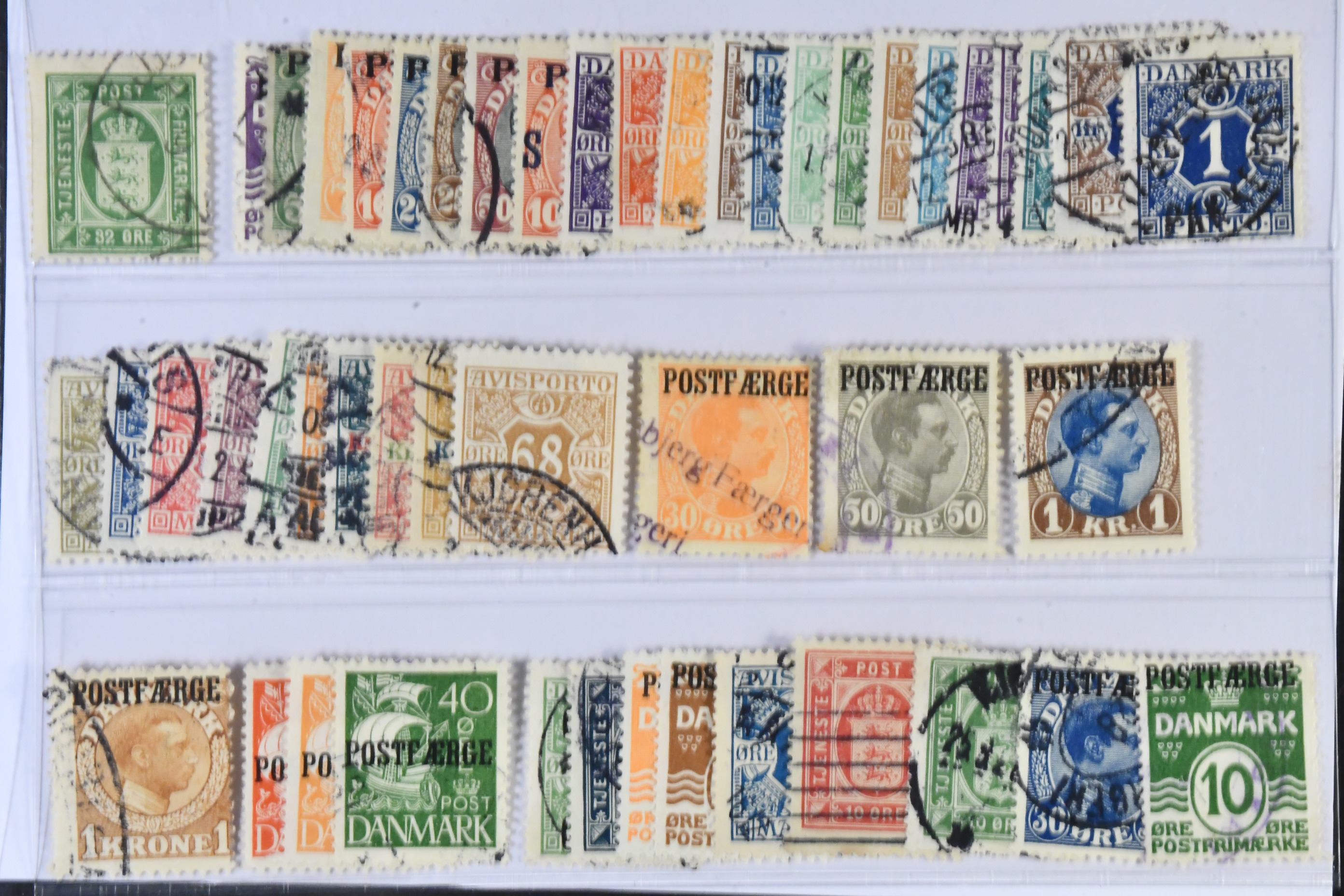 Denmark. Used 1875–1953. Back-of-the-book. All different, e.g. Tj9, L2-9, L10-18, L20-25, TI 1-10, PF3,6-7, 10, 23-25. Mostly good quality. F SEK 7010 (49)