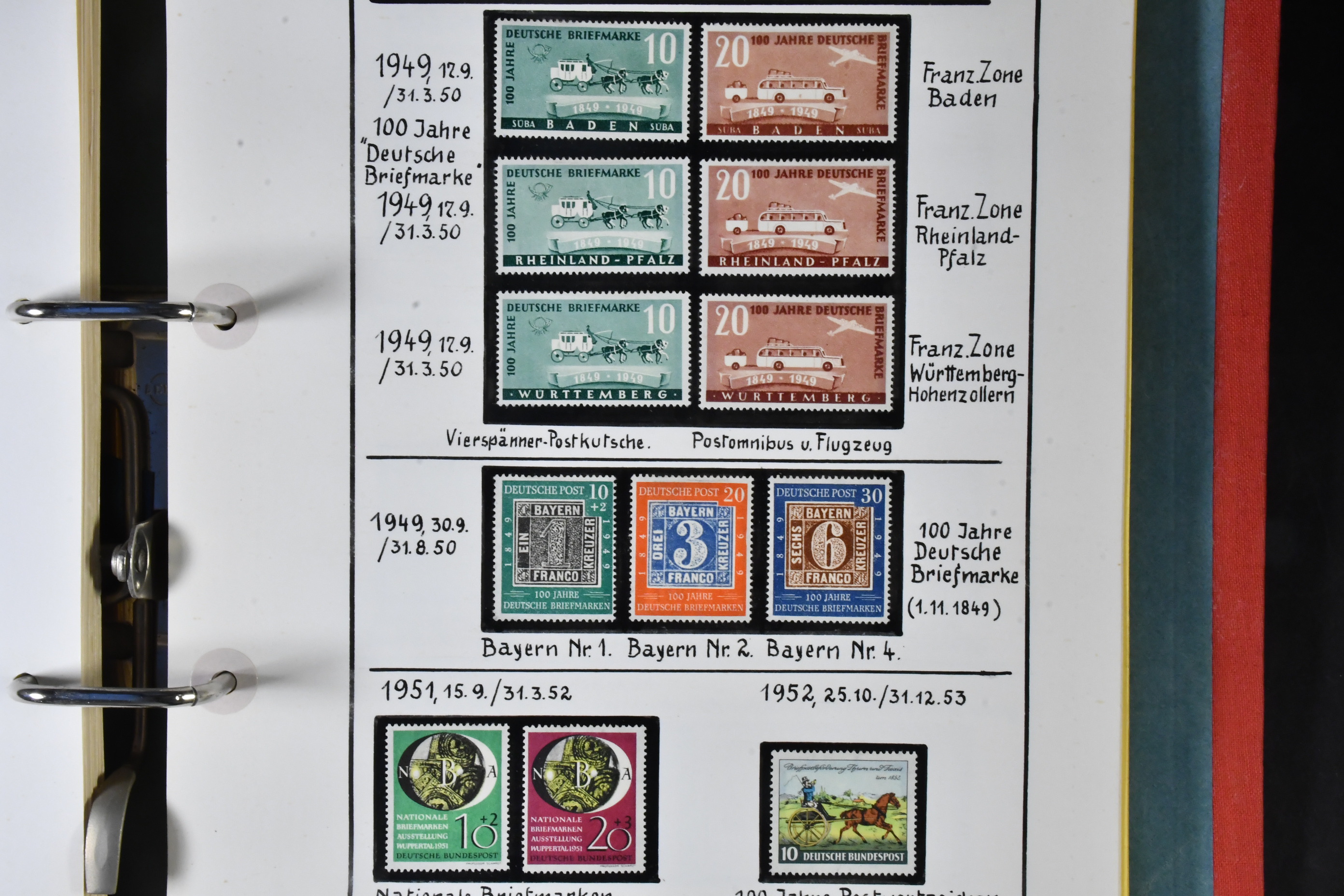 Germany, mixed. Collection ★/⊙ States-1960's in two albums. Partly arranged by themes with many better stamps and sets alrthough the unused stamps are (x) and not x -e.g. 80+90pfg Post Horn, evenso a very high value as there are also good used stamps and sets in the lot. Please see a selection of scans at www.philea.se. Mostly fine quality.