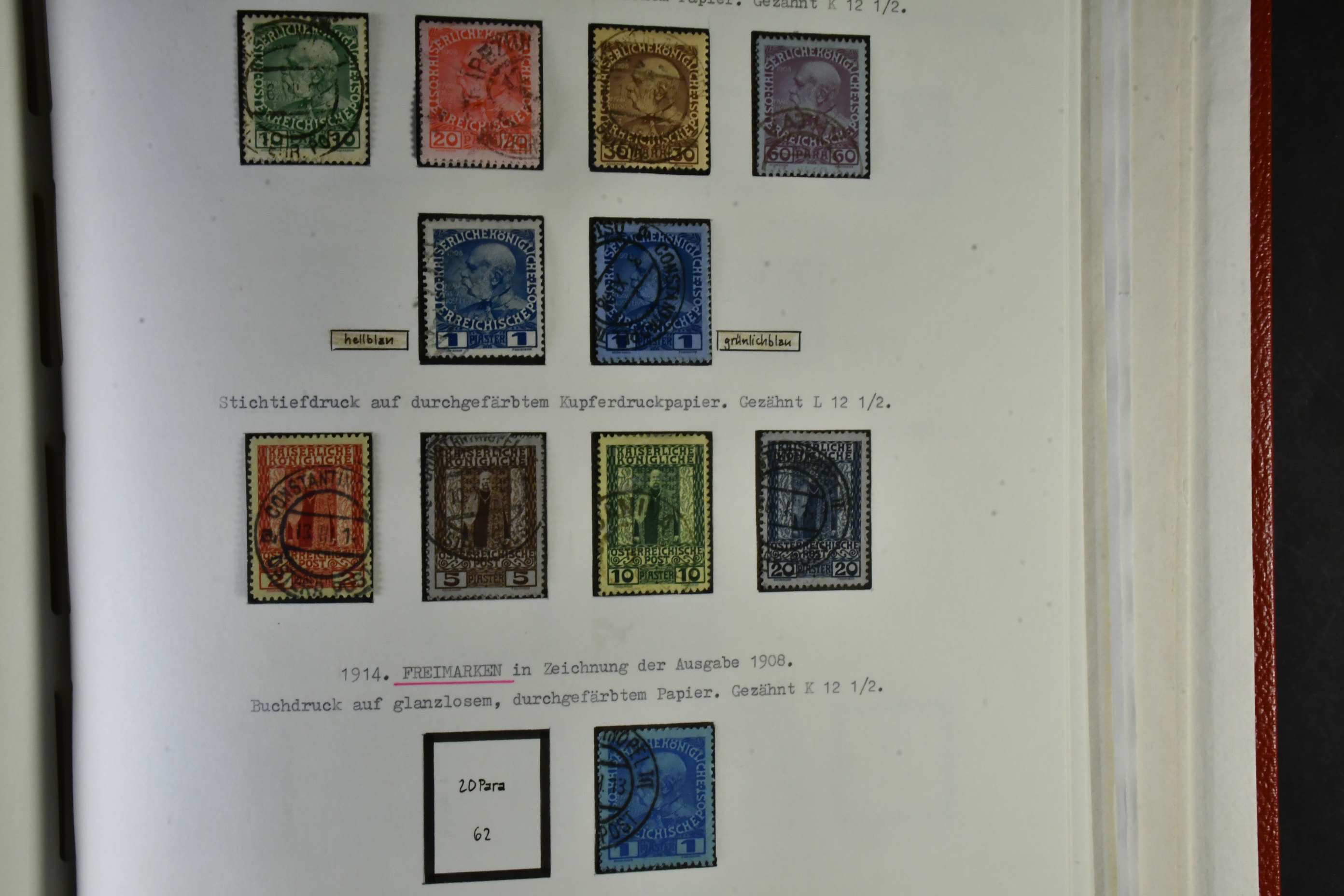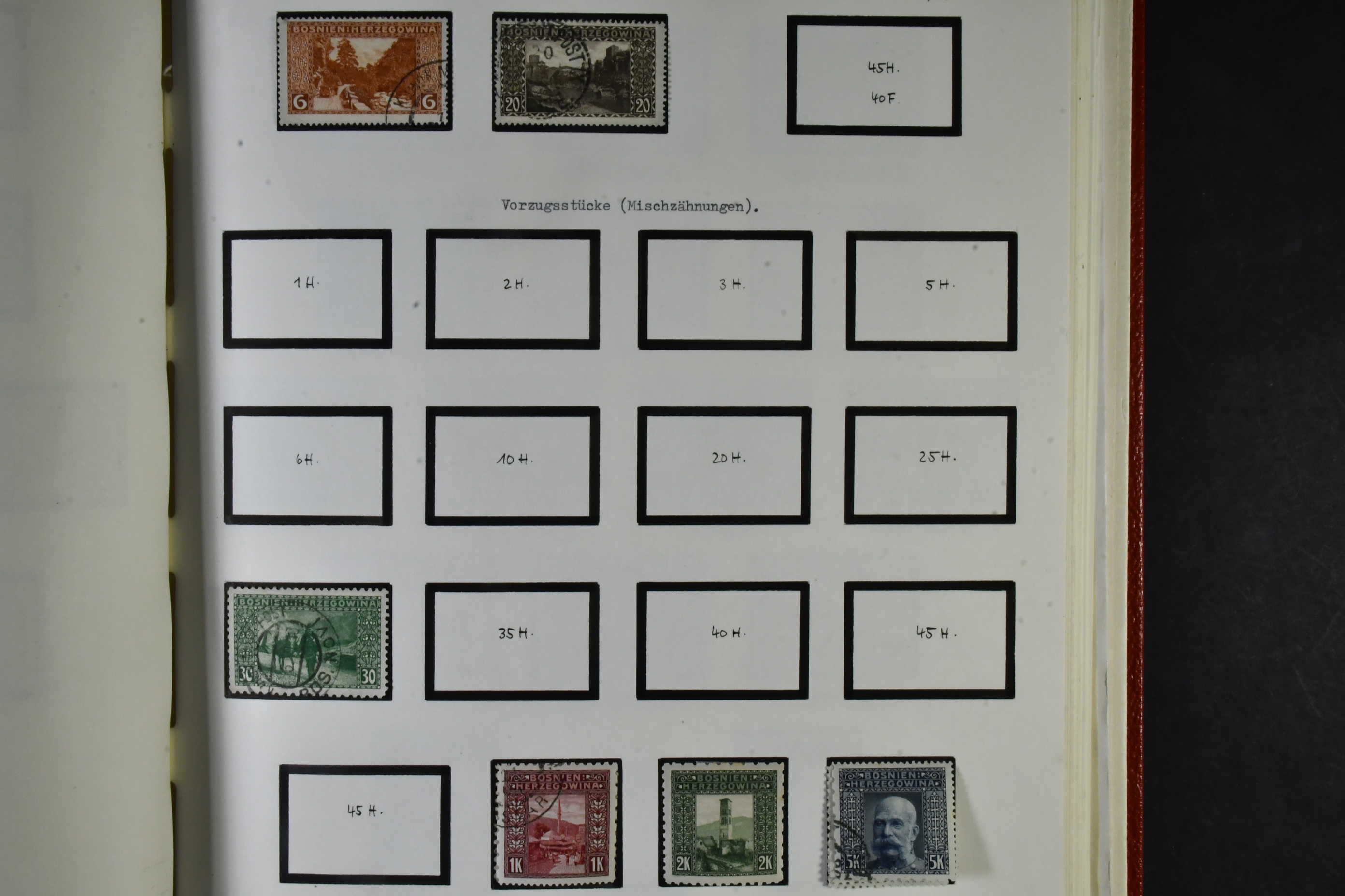 Austria, areas. Collection mostly used 1879-1918 in album. A great collection specialized BOSNIA HERZEGOVINA in shades, perf varieties, etc e.g. extensive study of the double-eagle issue, furhter various designs etc, then moving on with Austrian-Hungarian Field post, Lombardia/Venetia, Levant and Crete with many better stamps. Well-filled while leaving room for continued advanced collecting! The entire lot is presented at www.philea.se. Fine quality.