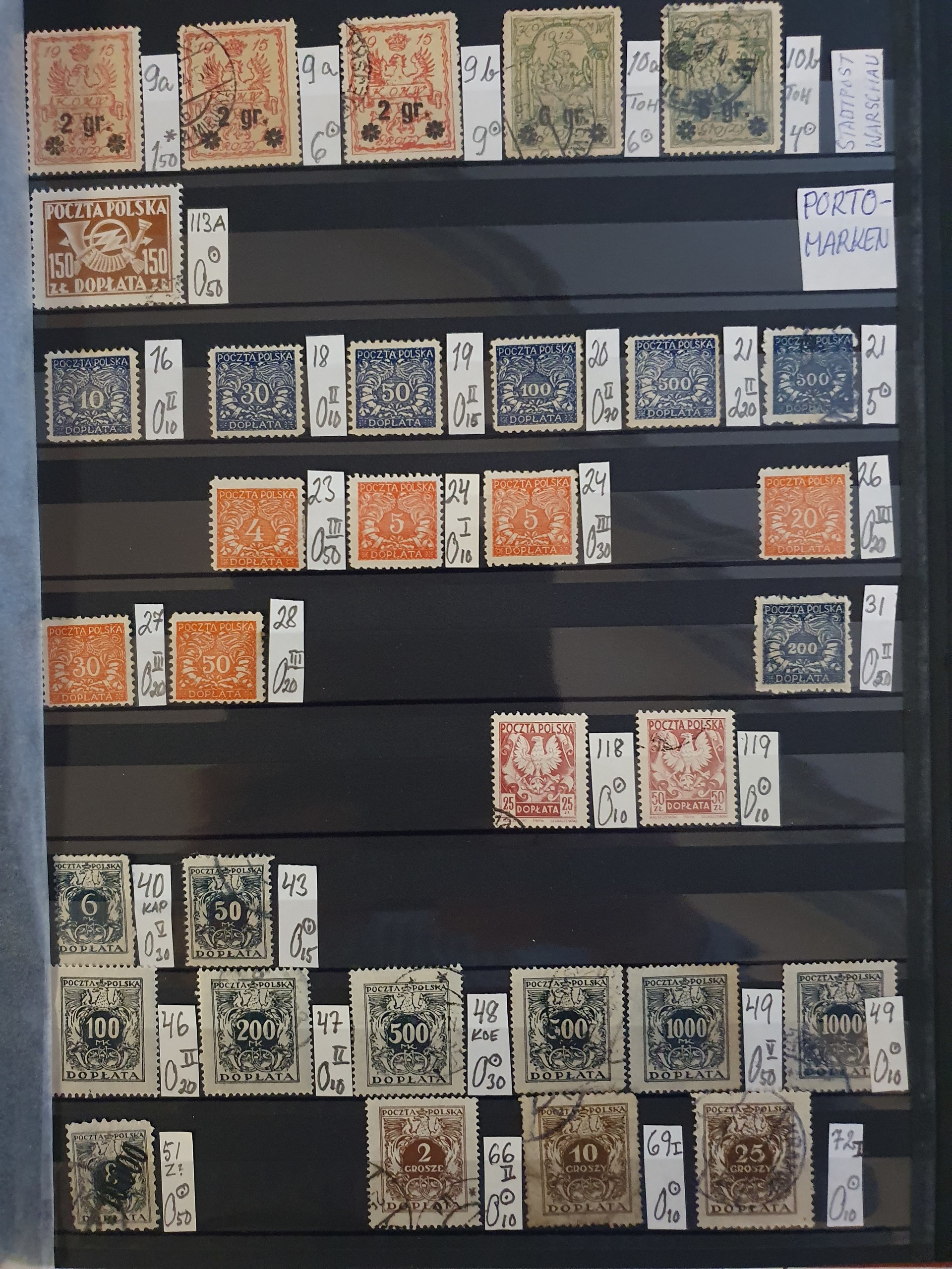 Poland. Collection/accumulation mostly used 1800s–1900s in box. A nice assembley of Polish stamps in two large stockbooks and a large speciell album. Also included are some stamps from Russia. Please see a selection of scans at www.philea.se. Good quality. Approx. 7 kg.
