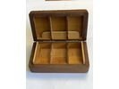 Stamp boxes. Well preserved stamp box in wood with carved lock, labels for philatelic exhibitions and a bronze medal in commemoration of the 90th anniversary of the Central post office in Stockholm Nice object!
